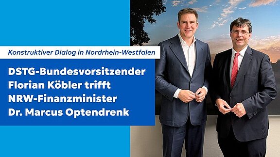 Der Bundesvorsitzende der Deutschen Steuer-Gewerkschaft (DSTG), Florian Köbler, hat ein äußerst konstruktives und vertrauensvolles Gespräch mit dem Finanzminister des Landes Nordrhein-Westfalen, Dr. Marcus Optendrenk, geführt. Im Zentrum des…